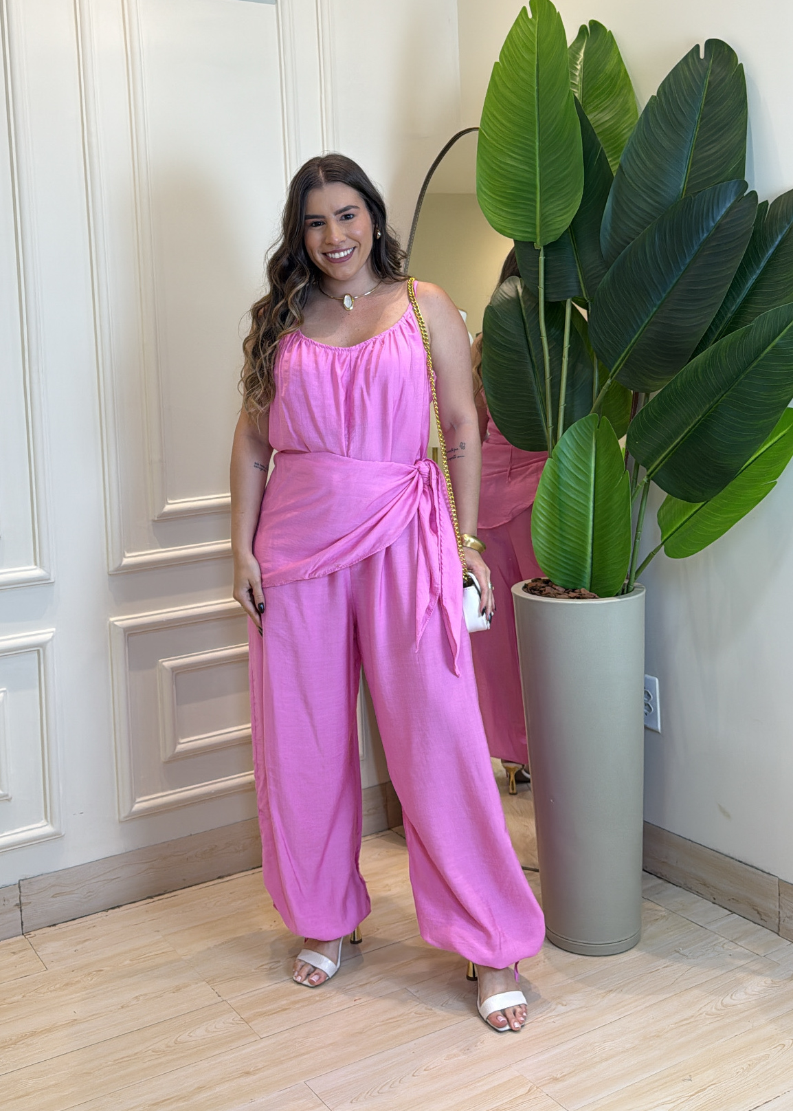 Modelo amplo e super versátil, com detalhe de regulagem na calça, permitindo usar de forma tradicional ou no estilo pantalona.