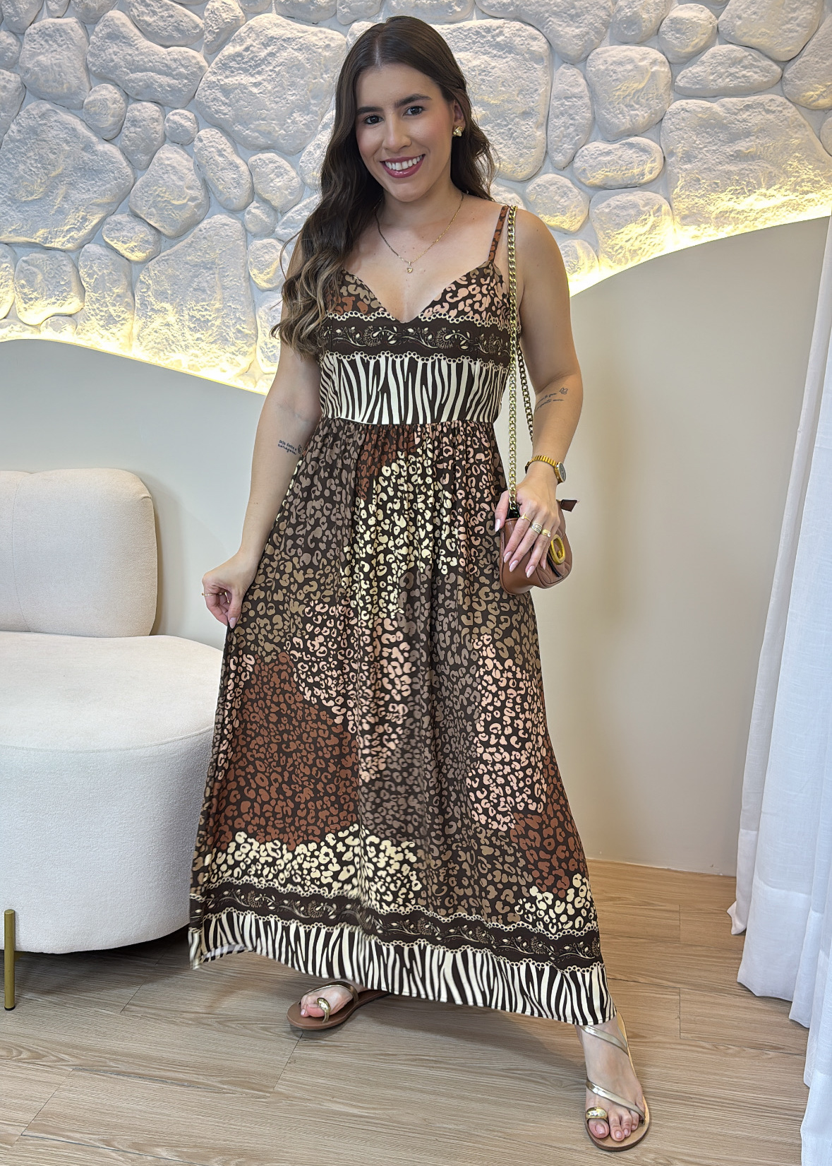 Vestido Longo Animal Print em Viscose com Lastex nas Costas – Leveza e Estilo