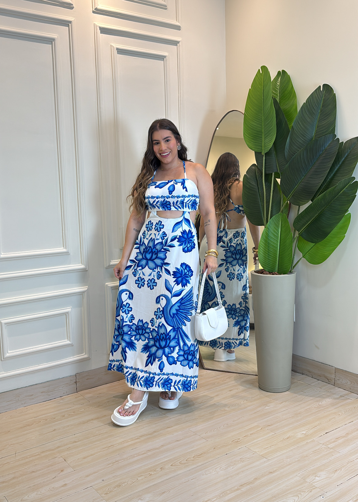 Seu design traz um recorte estratégico na cintura, que valoriza a silhueta de forma moderna e feminina, enquanto a amarração ajustável nas costas garante um caimento perfeito para diferentes corpos. A estampa exclusiva, inspirada em elementos florais e artesanais, eleva o visual e transforma o look em uma escolha certeira para ocasiões especiais ou momentos de lazer com estilo.