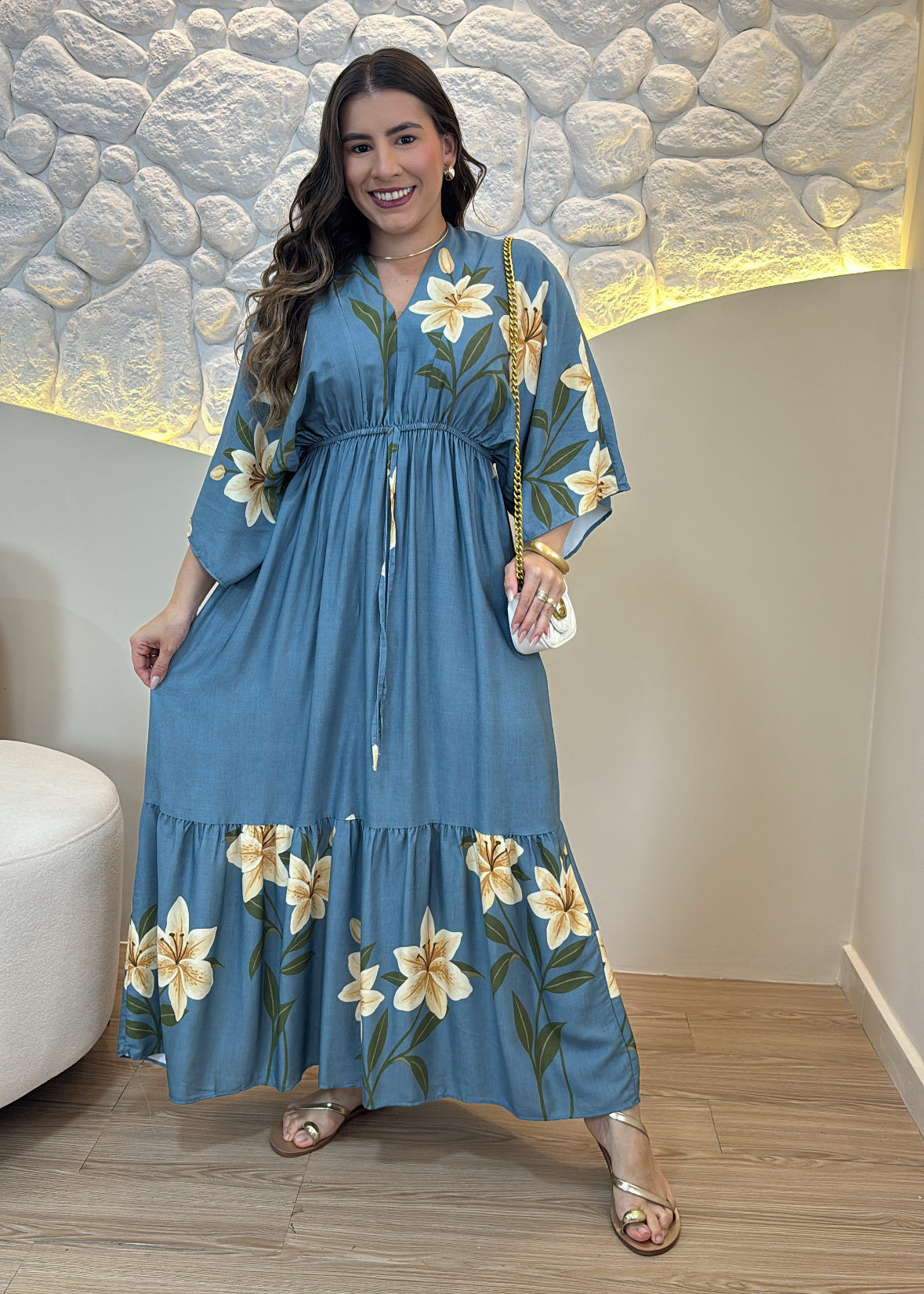 Com decote em V que alonga a silhueta e mangas soltinhas, ele entrega um caimento fluido e sofisticado, perfeito para quem busca conforto com estilo. O elástico na cintura garante ajuste ideal ao corpo, vestindo muito bem do 36 ao 42, enquanto o comprimento midi traz equilíbrio entre elegância e praticidade.