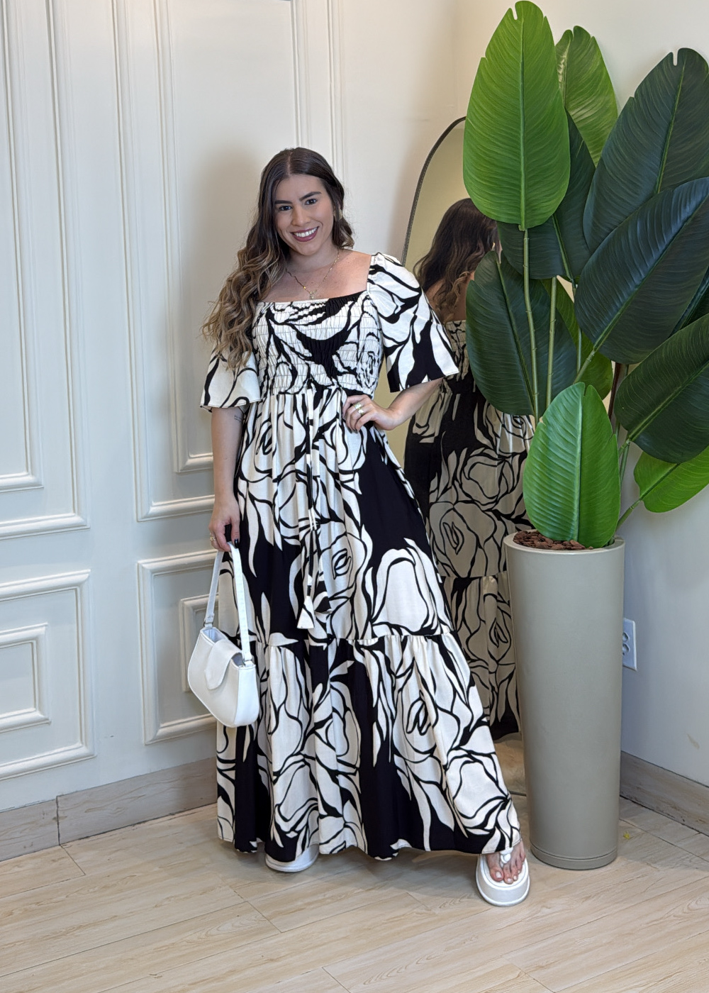 VESTIDO é uma peça perfeita para quem busca estilo, modelo possui manga com decote encantador, estampas lindas e atemporais.